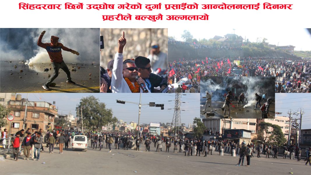सिंहदरवार छिर्ने उद्योष गरेको दुर्गा प्रसाईँको आन्दोलनलाई दिनभर प्रहरीले बल्खुमै अल्मलायो